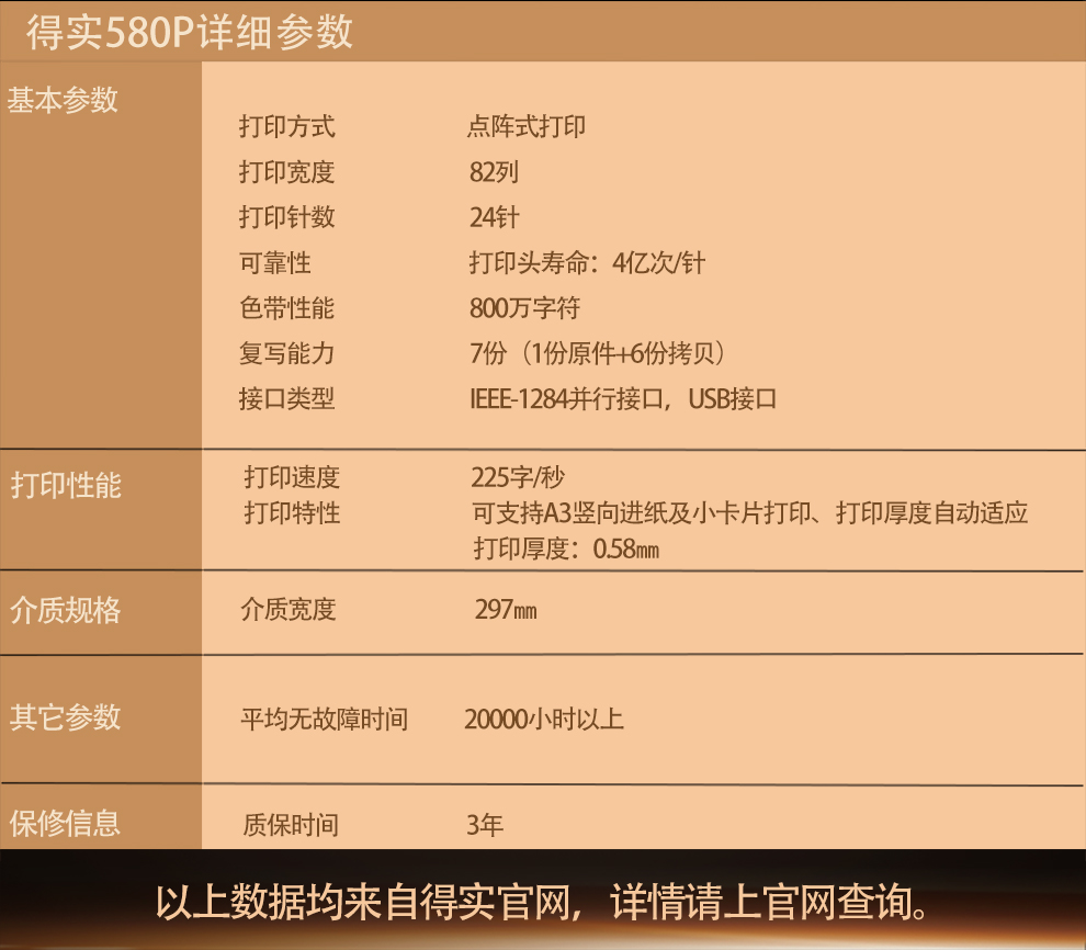 • 商品名称:得实(Dascom)AR-580P打印机前后进纸高速针式打印机