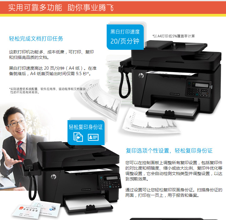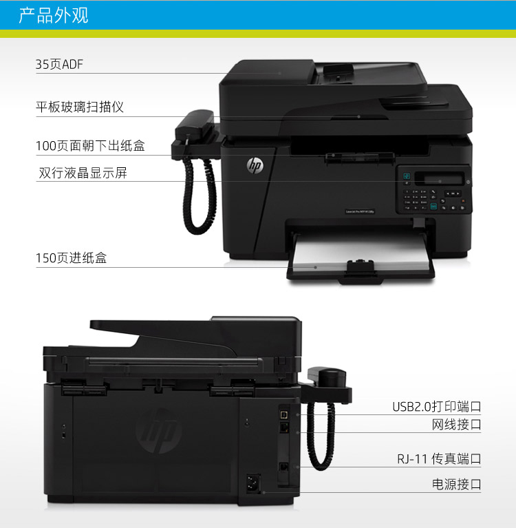 • 商品名称:惠普(HP)M128fp黑白激光一体机 打印复印扫描传真 电话手柄