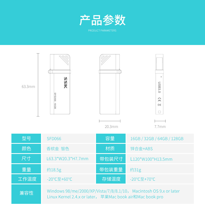 • 商品名称:SSK飚王 火神高速usb3.0 64G u盘