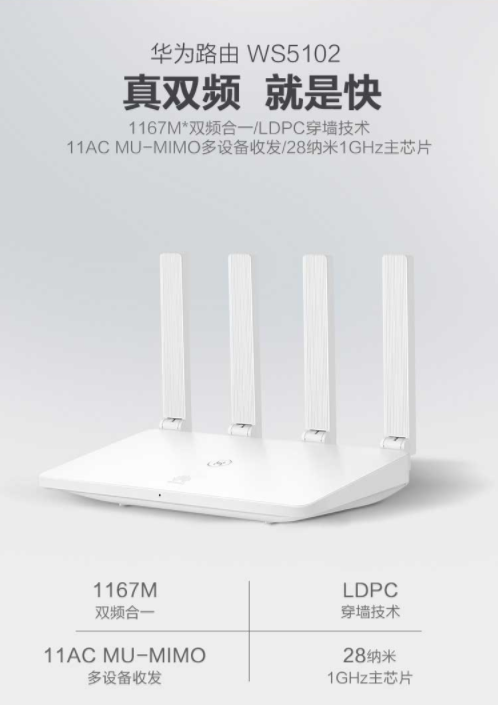 • 商品名称:华为(HUAWEI)WS5102 1200M真双频智能无线路由器