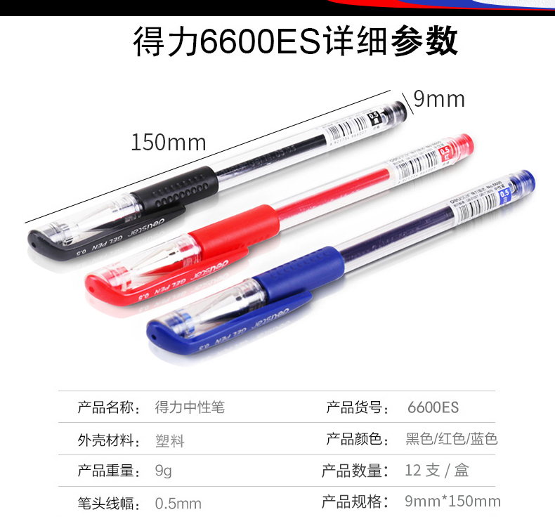 • 商品名称:得力 中性笔 签字笔 碳素笔办公用品黑色水笔 PP环保材料 黑色计量单位:支(12支一盒)