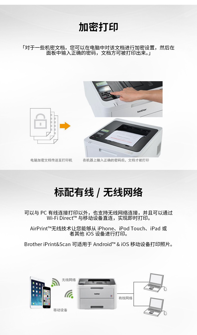 • 商品名称:兄弟HL-3160CDW彩色激光打印机有线/无线网络连接 自动双面打印