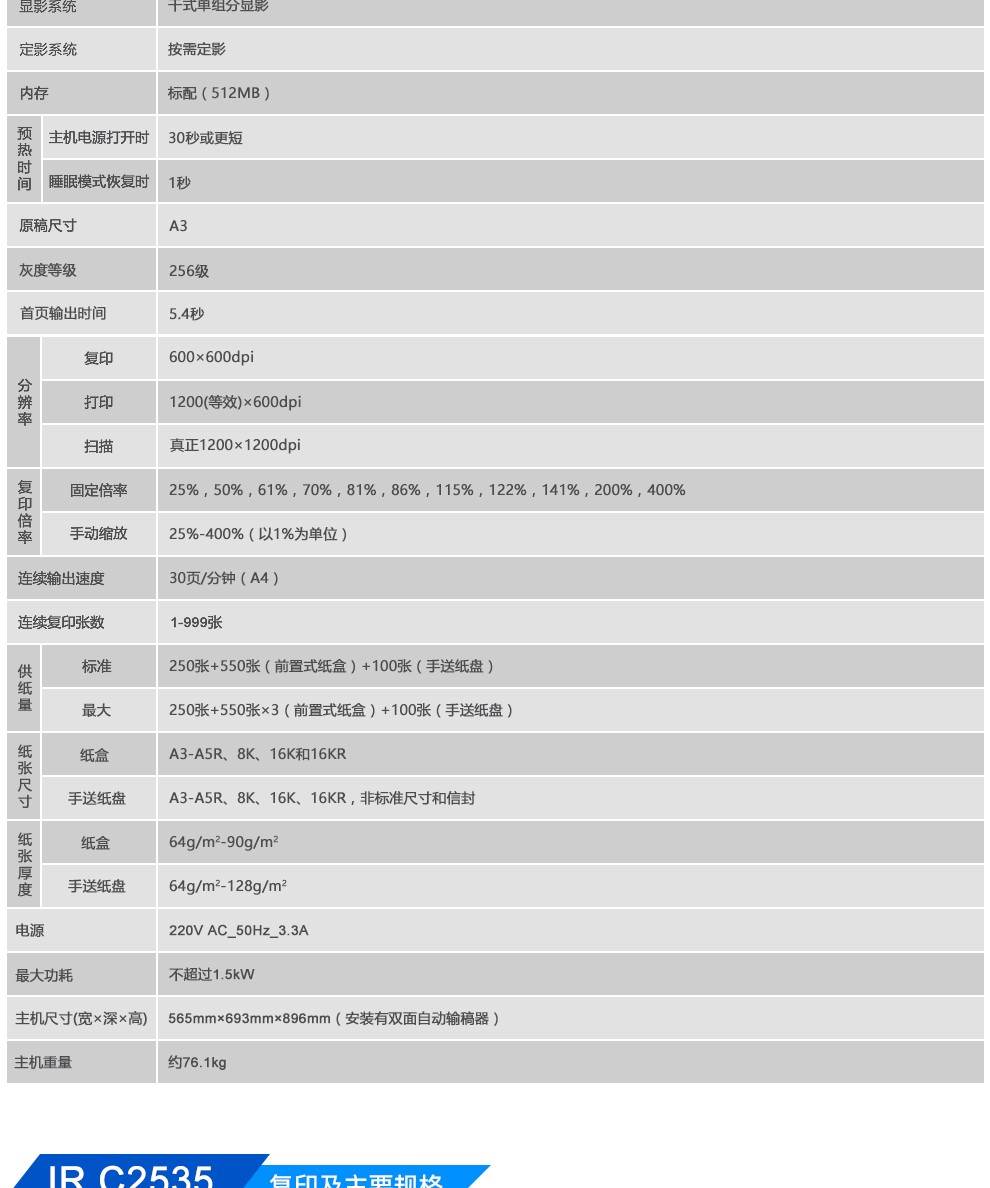 • 商品名称:佳能Canon iR2530i A3A4幅面黑白激光双面网络打印机
