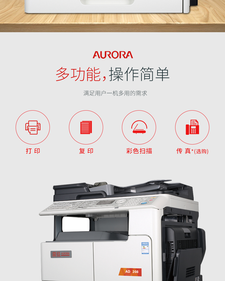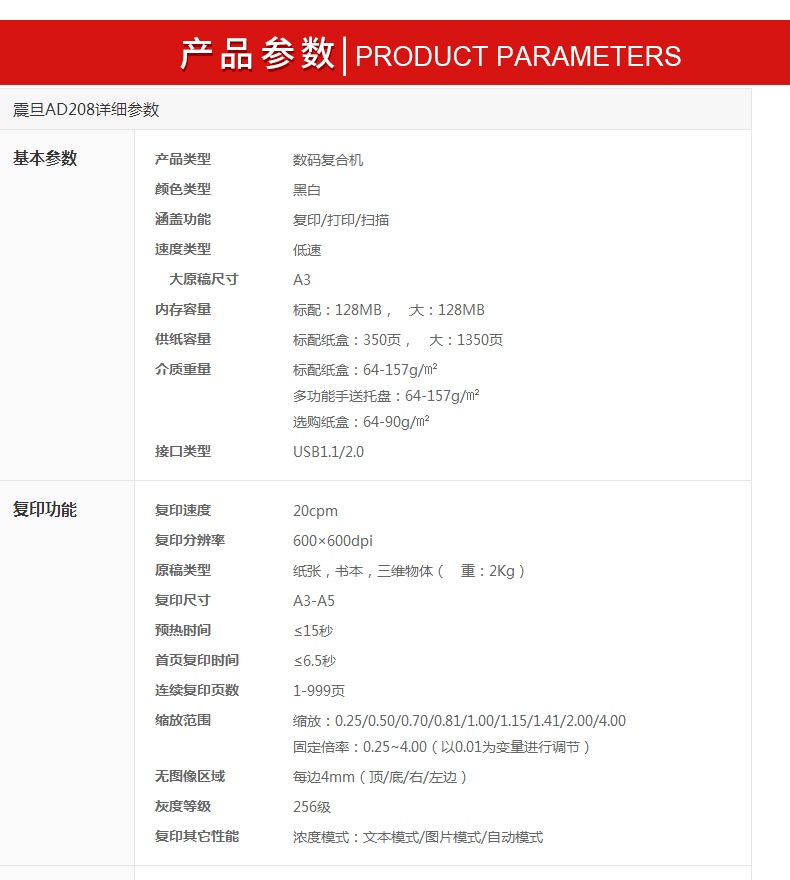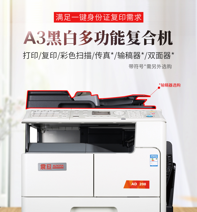 • 商品名称:震旦 AD208黑白激光多功能打印机一体机A3A4复合机 打印 复印 扫描