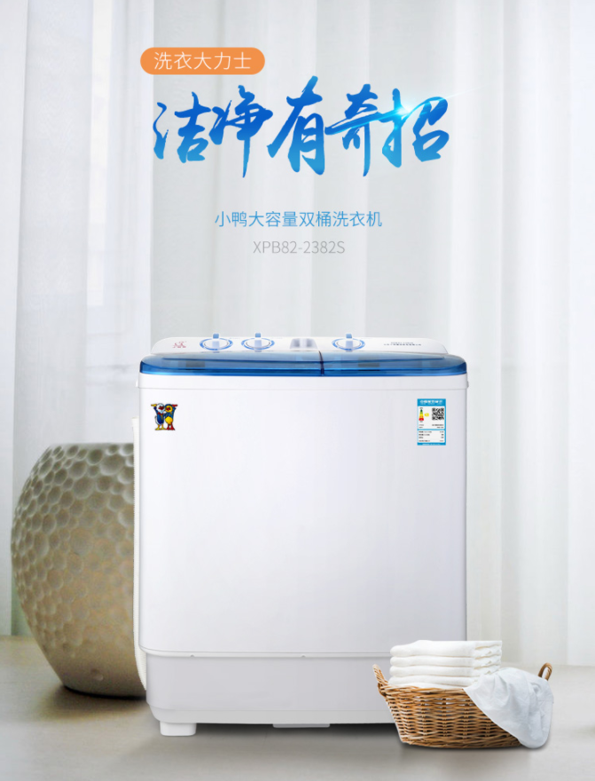 • 商品名称:小鸭 8.2公斤 大容量半自动波轮 双桶双缸洗衣机