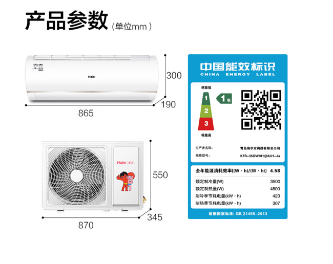 • 商品名称:海尔 (Haier)1.5匹壁挂式空调挂机
