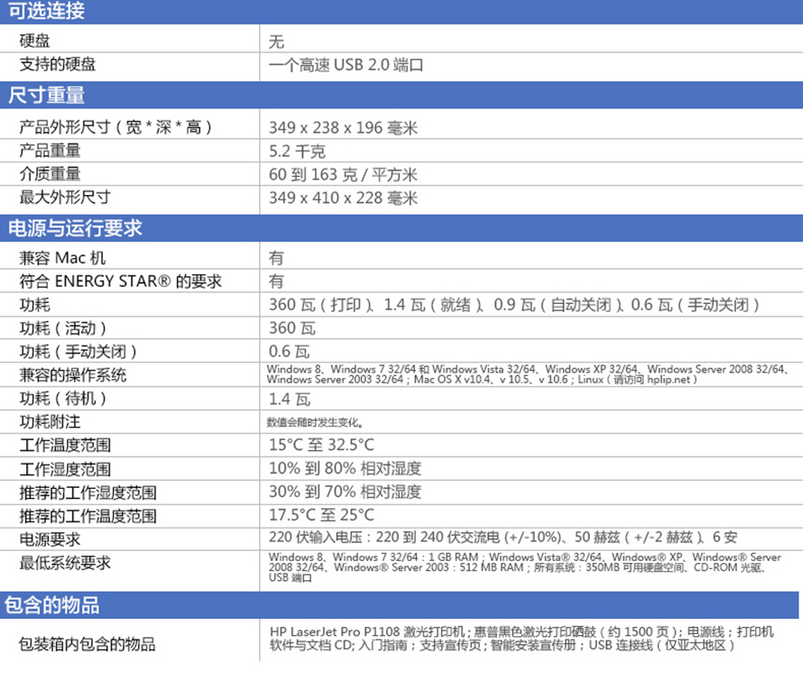 • 商品名称:惠普(HP) P1108黑白激光打印机