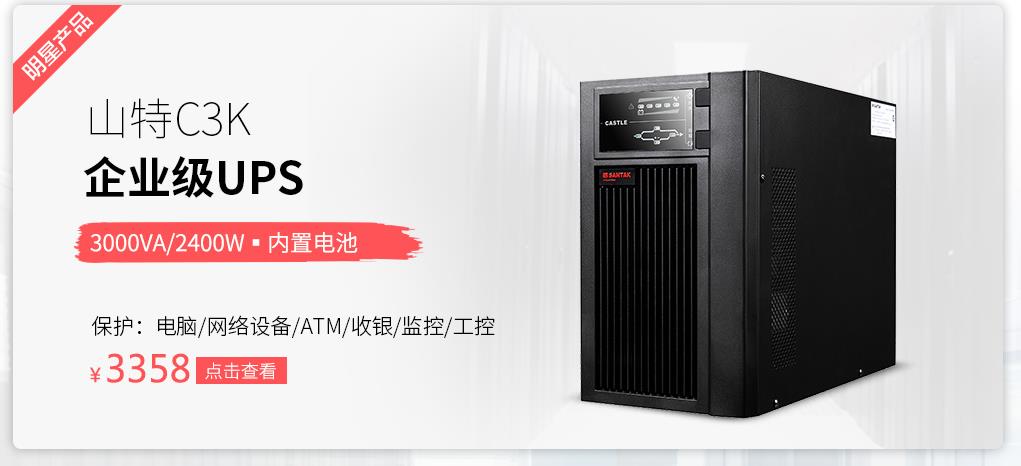 • 商品名称:山特(SANTAK) 山特C3K ups不间断电源在线式稳压 3000VA/2400W