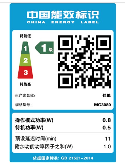 关闭 约 0.2 W 待机 (扫描灯关闭) 约 1.6 W 无线LAN 待机 (所有端口连接,扫描灯是关闭的) 约 1.6W 复印*5 约10 W 无线