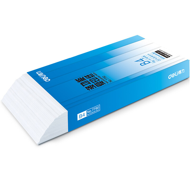 • 商品名称:得力(deli) 7790 B4 莱茵河复印纸 70g 500张/包 单包装