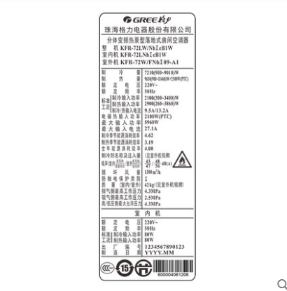 • 商品名称:Gree/格力 KFR-72LW/NhIeB1W 3匹一级能效变频冷暖客厅空调柜机