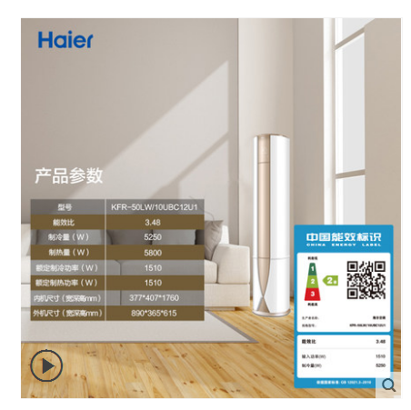 • 商品名称:Haier/海尔 KFR-50LW/10UBC12U1 2匹立式圆柱形家用柜机空调