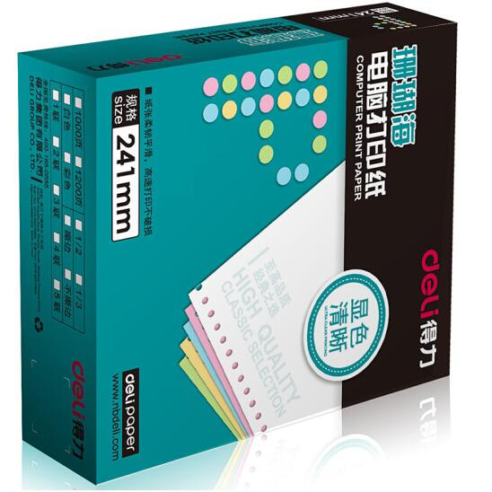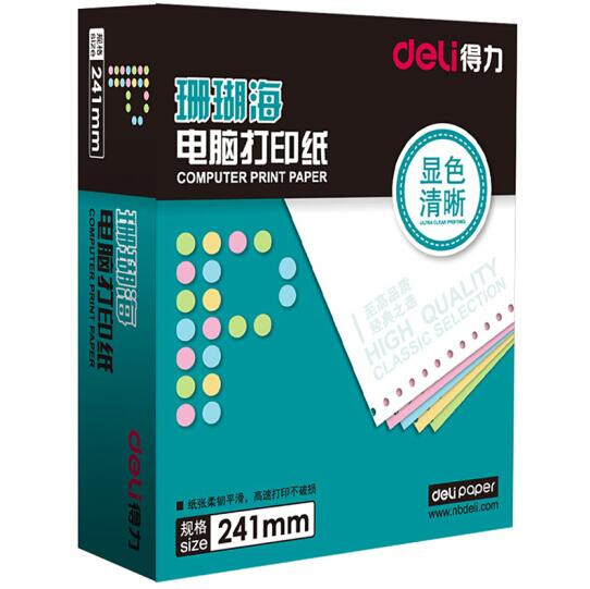 • 商品名称:得力(deli)珊瑚海白色电脑打印纸S241-1-1/2S一联二等分整张撕边80列电脑打印纸 (色序:全白 1000页/箱)