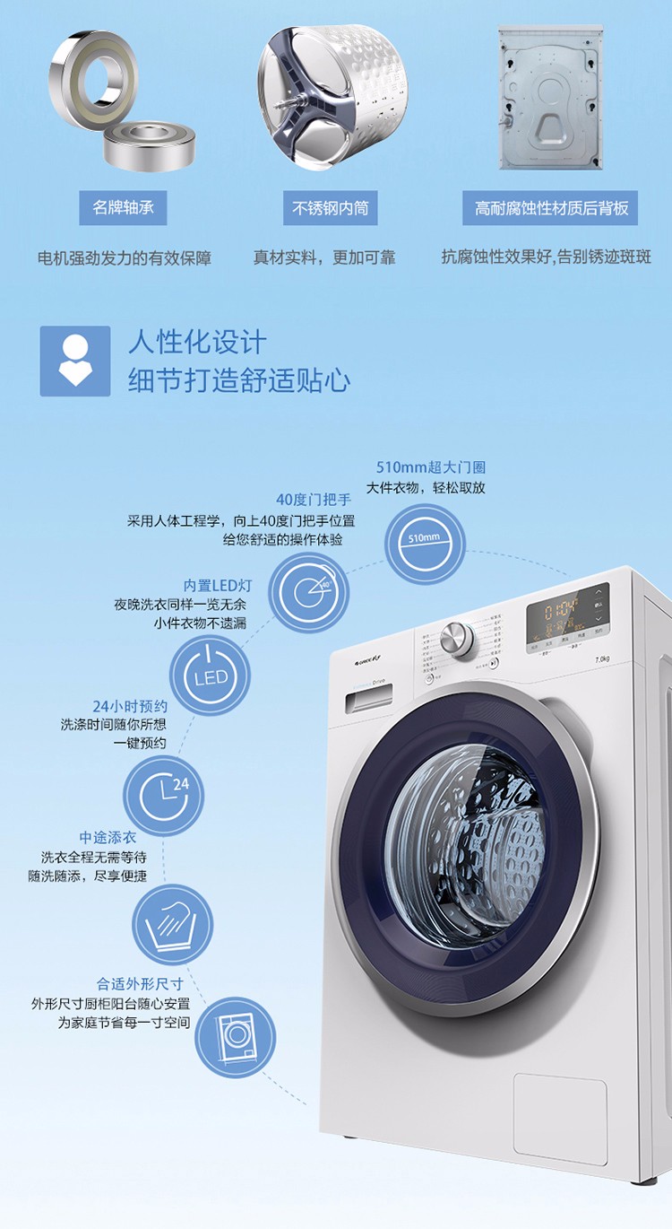 • 商品名称:格力变频滚筒洗衣机_7kg洗涤量 14种程序_XQG70-B1401Aa 白色_MP030000100