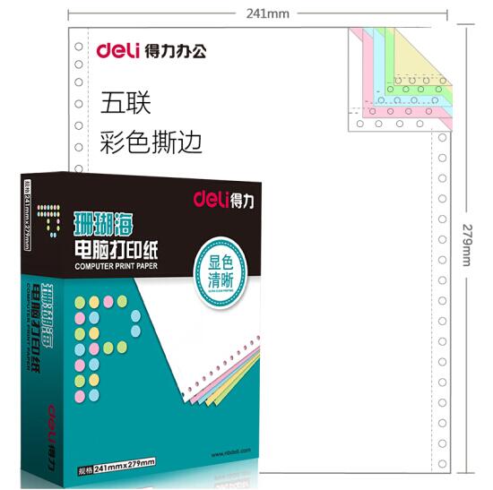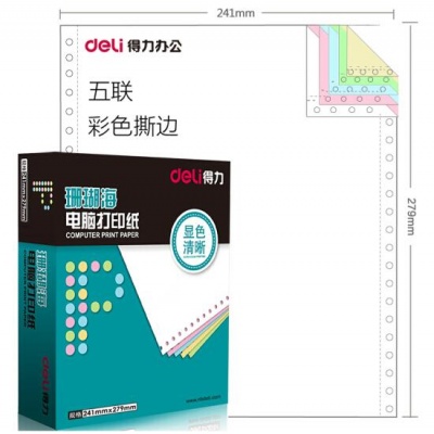 • 商品名称:得力(deli)珊瑚海S241-5CS五联彩色电脑打印纸整张80列(撕边 色序:白红蓝绿黄 1000页/箱)
