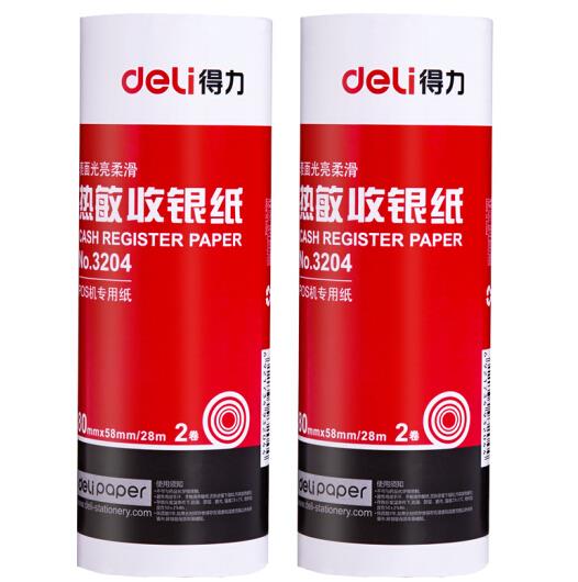 得力(deli)80mm*58mm热敏收银纸/收银机打印纸/超市小票打印纸 28米/卷 50卷/箱 3204