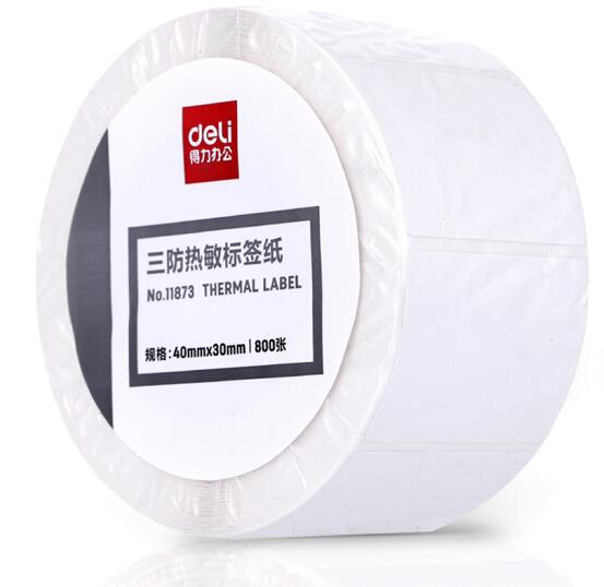 • 商品名称:得力(deli)11873 三防热敏标签打印纸 40mm*30mm不干胶条码打印纸 800张*96卷装