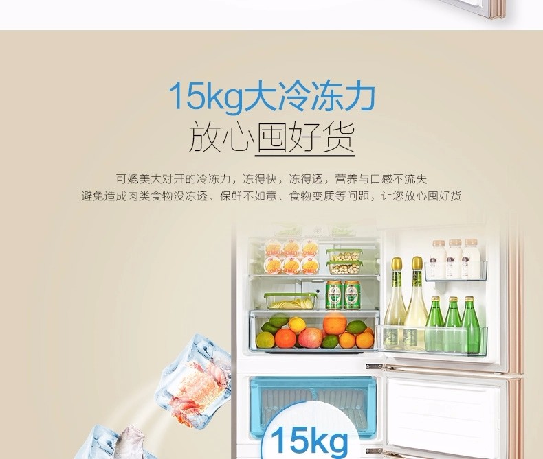 • 商品名称:【新品】美的(Midea)冰箱三门 小型家用 无霜变频冰箱 三门冰箱 BCD-252WTPM(E)